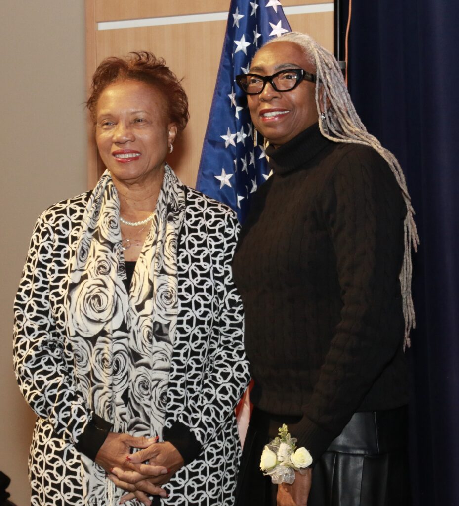 Cambridge, Mass. Mayor Denise Simmons, who was attending the event, poses for a photo with Ward 6 Alderwoman Vengerflutta Smith.