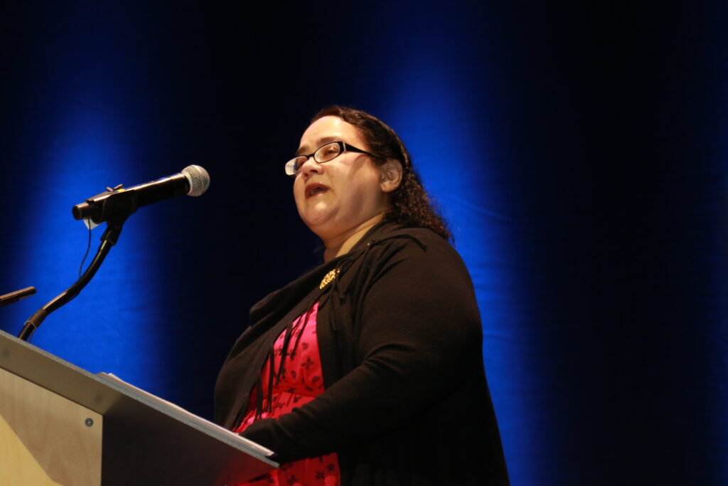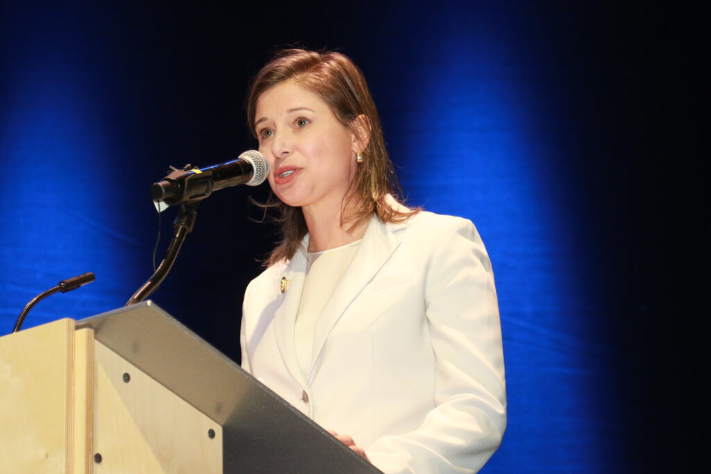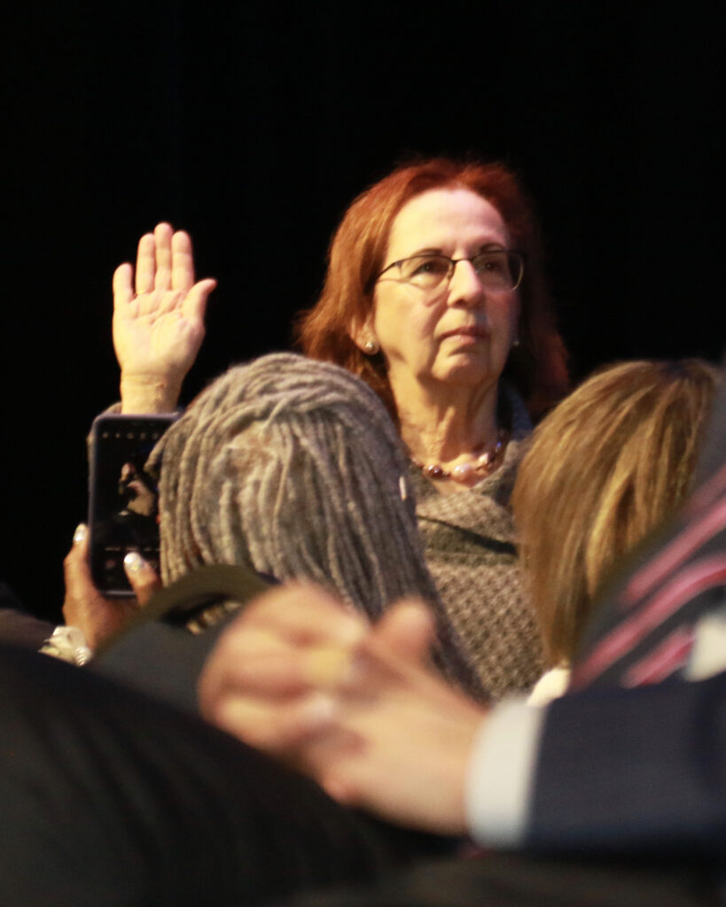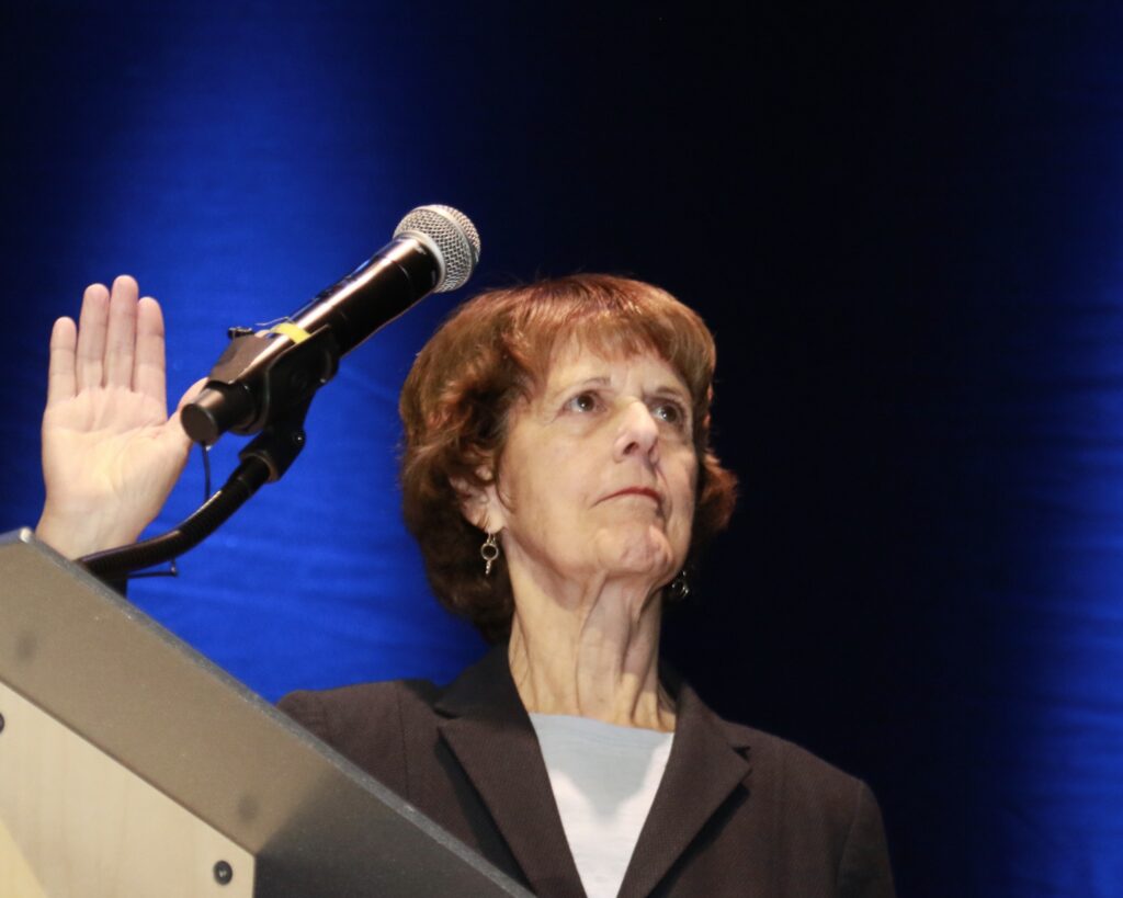 Congresswoman Maggie Goodlander was the master of ceremonies for the hour-long inauguration and business meeting, which followed. Photo/Allegra Boverman.